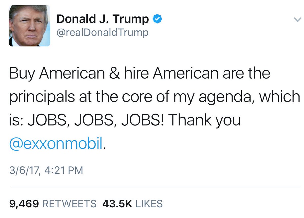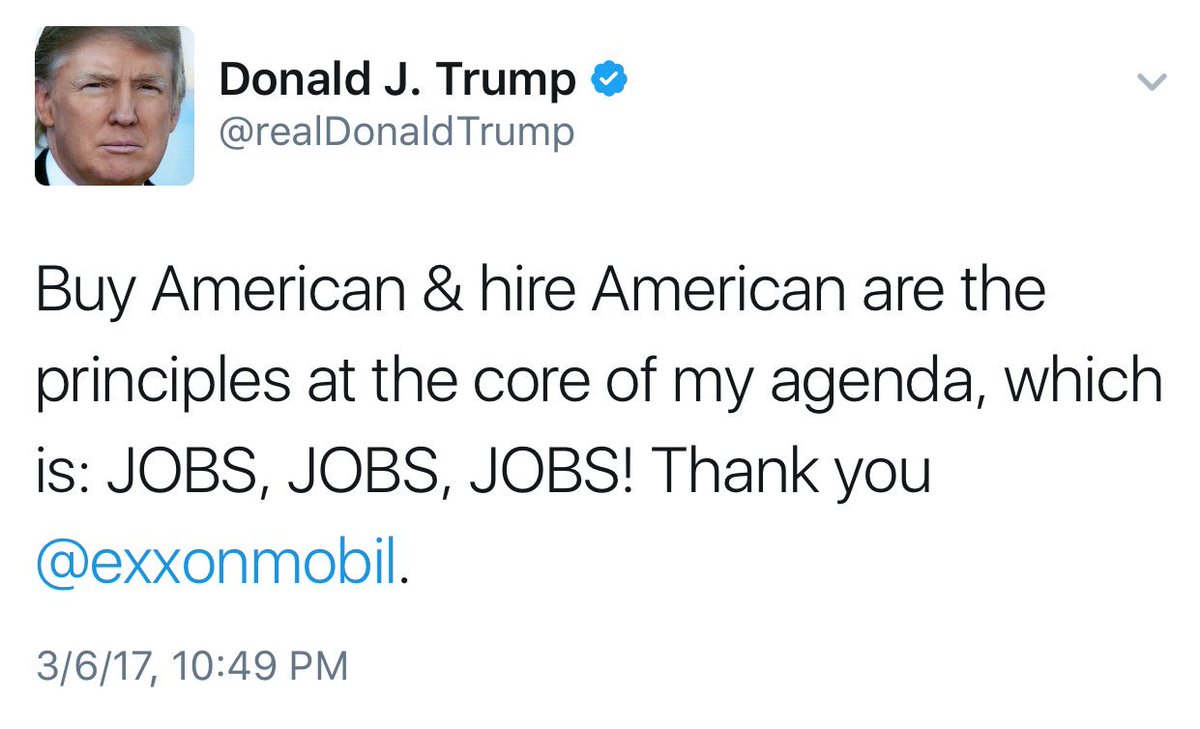 While we're at it, Exxon is going to create jobs, but it's going to need engineers that your Muslim ban will block.
