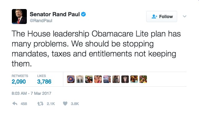 @SpeakerRyan from the SWAMP...he kept the bill secret like Pelosi & it still smells like ObamaCare. Trust@RandPaulThanks. Twitter will use this to make your timeline better. UndoUndo