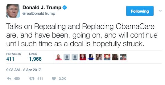 Don't worry, The Donald has #TrumpCare under control and back on track.