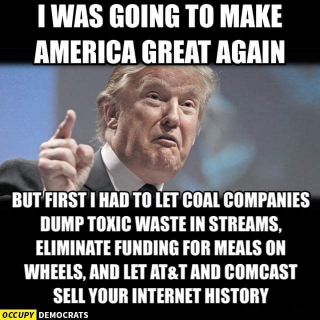 Another example: You said you want to fix the water in Flint, Michigan yet you repealed regulations that keep our waterways clear.