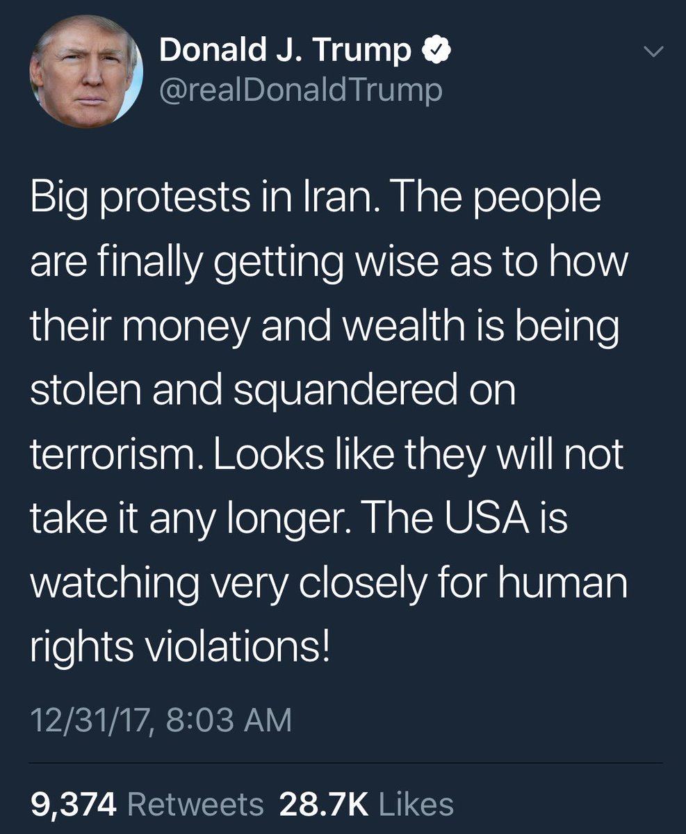The iranian people have realized,this revolution was a big mistake and now they give their blood to take their country back,we appreciate your support mr,president,God bless you.