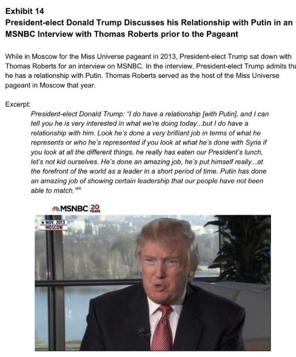 And the kicker...Your 2013 MSNBC interview in Moscow: “I do have a relationship with Putin...”
