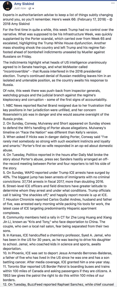 One clear change is people have started making strange lists. We may have stumbled into a tautological loop.https://twitter.com/Amy_Siskind/status/964963507899858946 …