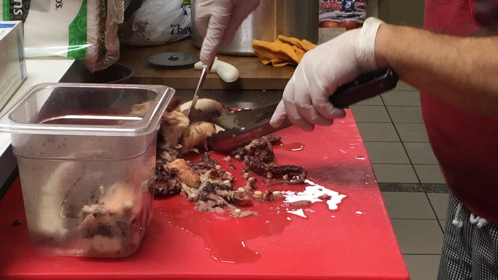 After over an hour of cooking the octopus, I begin the cutting processpic.twitter.com/kegCvBt7Qw
