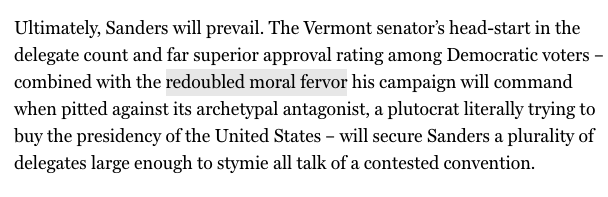 I was with every step of this @EricLevitz take until he predicted "redoubled moral fervor" by the Bernie people against Bloomberg. Their moral fervor dial is already at 11 all the time! https://nymag.com/intelligencer/2020/02/new-hampshire-primary-results-analysis-bernie-bloomberg-won.html …pic.twitter.com/TV1OKXRsrr