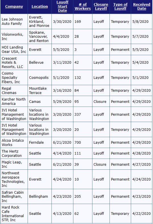 Here is a partial list of businesses in Washington State that have laid off employees, gone into bankruptcy, or closed permanently. It's critical to keep track of COVID cases—but there should also be a public dashboard for jobs lost, companies shut down, and dreams demolished.pic.twitter.com/snXlVchTA0