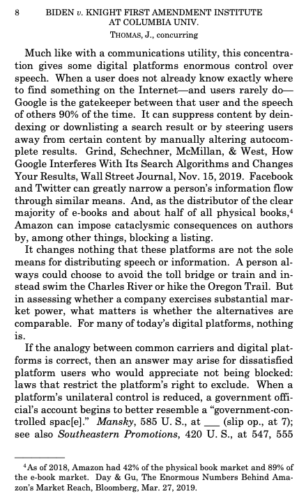 Justice Clarence Thomas is always worth reading closely. Today is no exception. Read his entire concurrence today (starts at p. 9 of this PDF: https://www.supremecourt.gov/orders/courtorders/040521zor_3204.pdf …) and then note the reference here to Amazon... We need more legal thinkers like Justice Thomas.pic.twitter.com/mS1qipAJmZ
