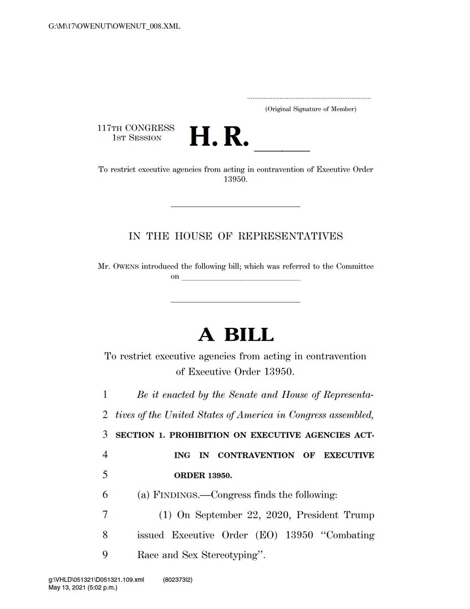 BREAKING: Congressman @BurgessOwens will introduce legislation to reinstate Trump's ban on critical race theory in the federal government. Owens blasts critical race theory as a "Marxist ideology" that seeks to destroy "Western Enlightenment Liberalism."pic.twitter.com/wvQhqpT96S