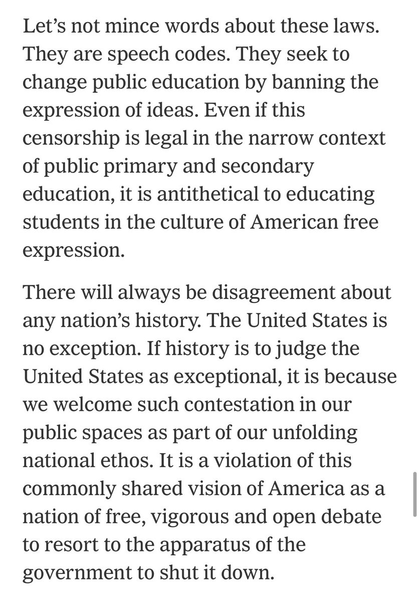 Chris misrepresents the substance and (where I'm concerned) intent of the NYT editorial. The concluding graphs make the author's shared purpose clear. No endorsement of "CRT" in schools. No scaremongering RE "threats to democracy." It's an argument FOR a culture of pluralism. https://twitter.com/realchrisrufo/status/1413862387073966083 …pic.twitter.com/yEAAXurUvx
