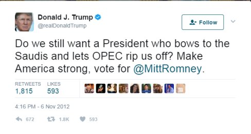 Big talking bully @realDonaldTrump bows to @KingSalman.