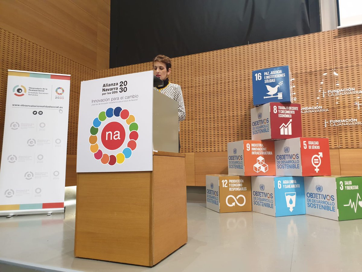 La Presidenta del @gob_na, @MariaChivite_na, ha inaugurado la jornada 'Alianza Navarra por los ODS 2030. Innovación para el cambio', organizada por el @realidadsoc_na, con un llamamiento a toda la sociedad para promover la #AlianzaNavarra2030. #Navarrapic.twitter.com/nowPGwrmxt