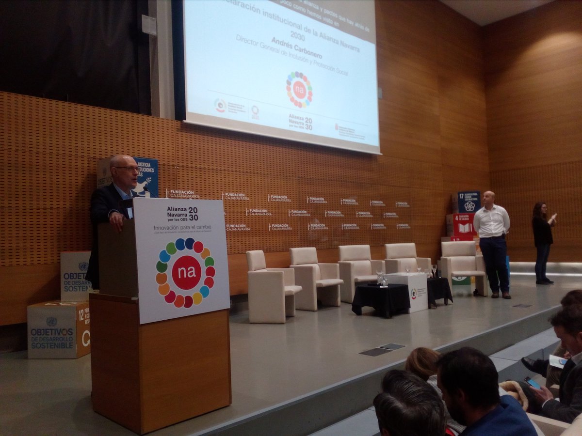 Llega el turno de @Acarboner1, Director General de Inclusión y Protección Social del Departamento de Derechos Sociales del @gob_na, que lee la declaración institucional de la #AlianzaNavarra2030.pic.twitter.com/y5upUD8Xp7