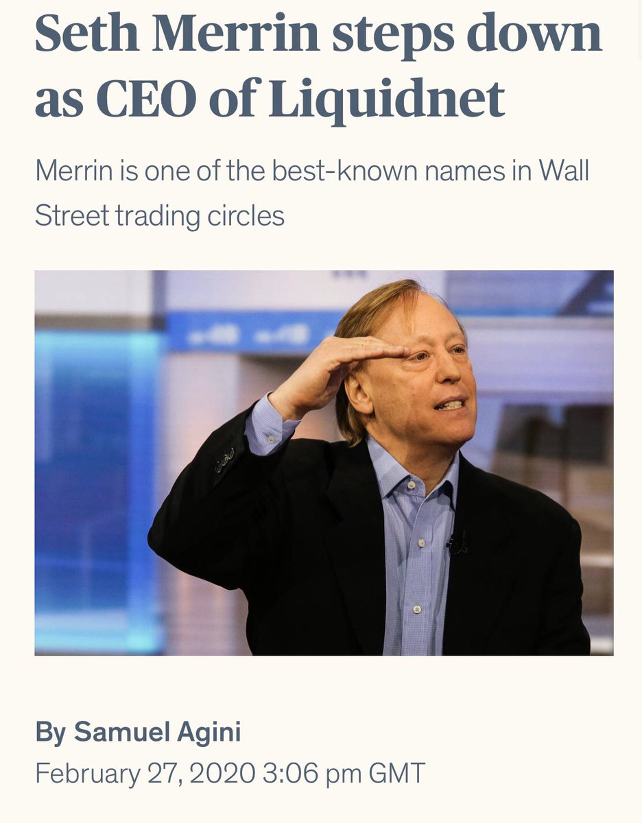 ADD ANOTHER TO THE LIST Wall Street CEO steps down: “Seth Merrin steps down as CEO of Liquidnet... Merrin is one of the best-known names in Wall Street trading circles”pic.twitter.com/DsdNozmEG4