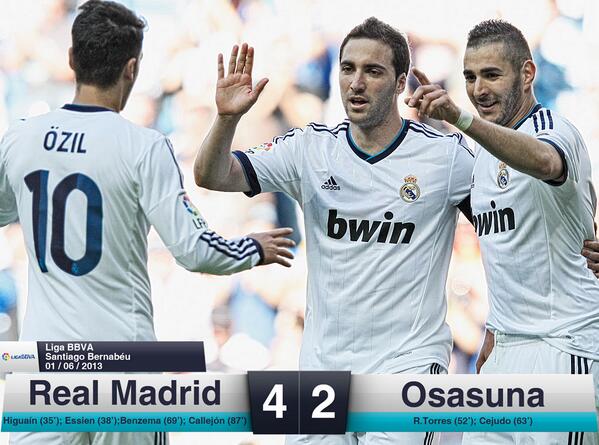 @realmadrid: Real Madrid 4 Osasuna 2 Gracias por todo Mou!!!#halamadrid#mourinhismo#yosoydemou " -