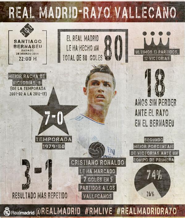 “@realmadrid: Conoce todos los datos del Real Madrid-Rayo... #RealMadridRayo #RMLive pic.twitter.com/HNpfCF0NG7”