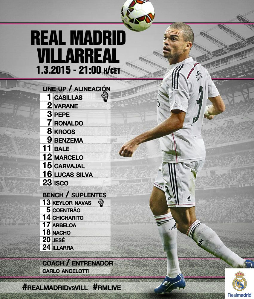 @realmadrid: ¡Esta es la alineación contra el@VillarrealCF!#RealMadridvsVILL#HalaMadrid#RMLive pic.twitter.com/UxohuT9Uxs”