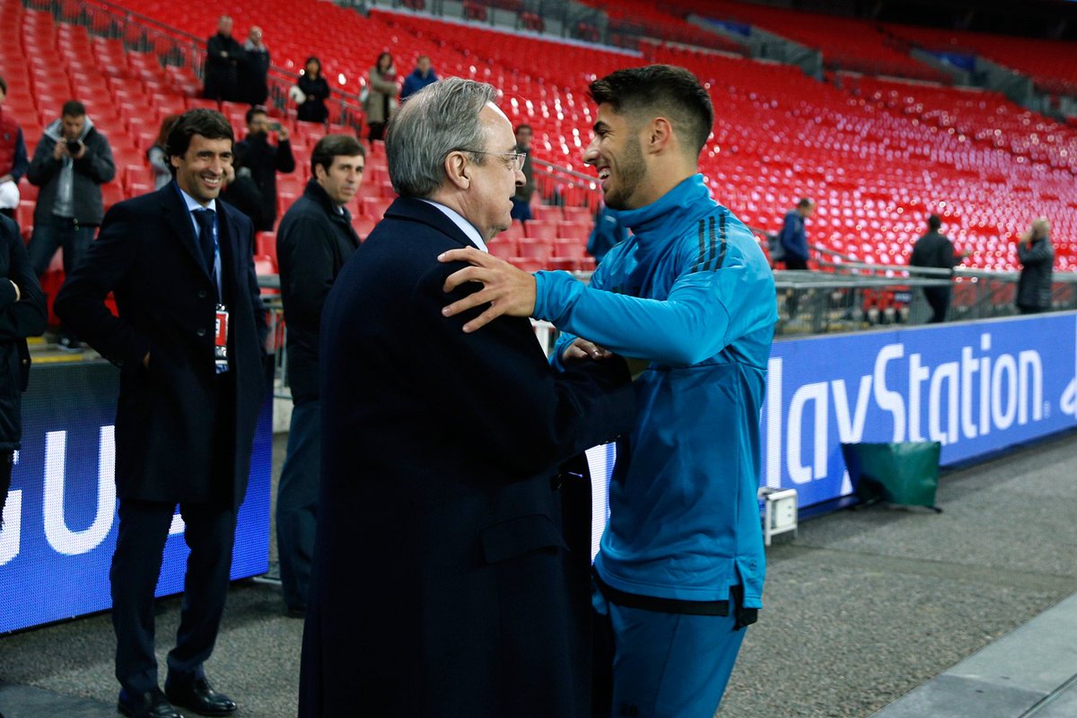 Florentino Pérez saludó al equipo tras el entrenamiento en Wembley.