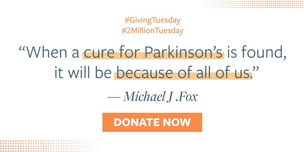 #GivingTuesday and year-round to make a#Parkinsons cure inevitable. Thank you to everyone supporting@MichaelJFoxOrg to drive results. Today, every donation is matched, up to $2 million: https://bit.ly/2pXfzzC#2MillionTuesdaypic.twitter.com/qpaYSBQdrB