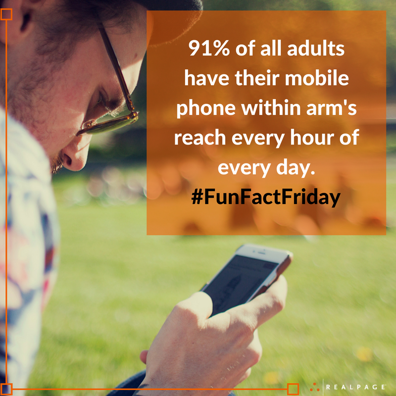 91% of all adults have their mobile phone within arm's reach every hour of every day.