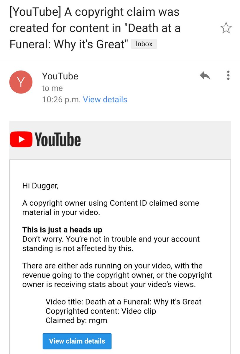 I'm not going to appeal it because there's no viewing restrictions and I wasn't making any money from it anyway, but it's actually ridiculous that YouTube still hasn't put anything in place to prevent unlawful copyright claims from happening.