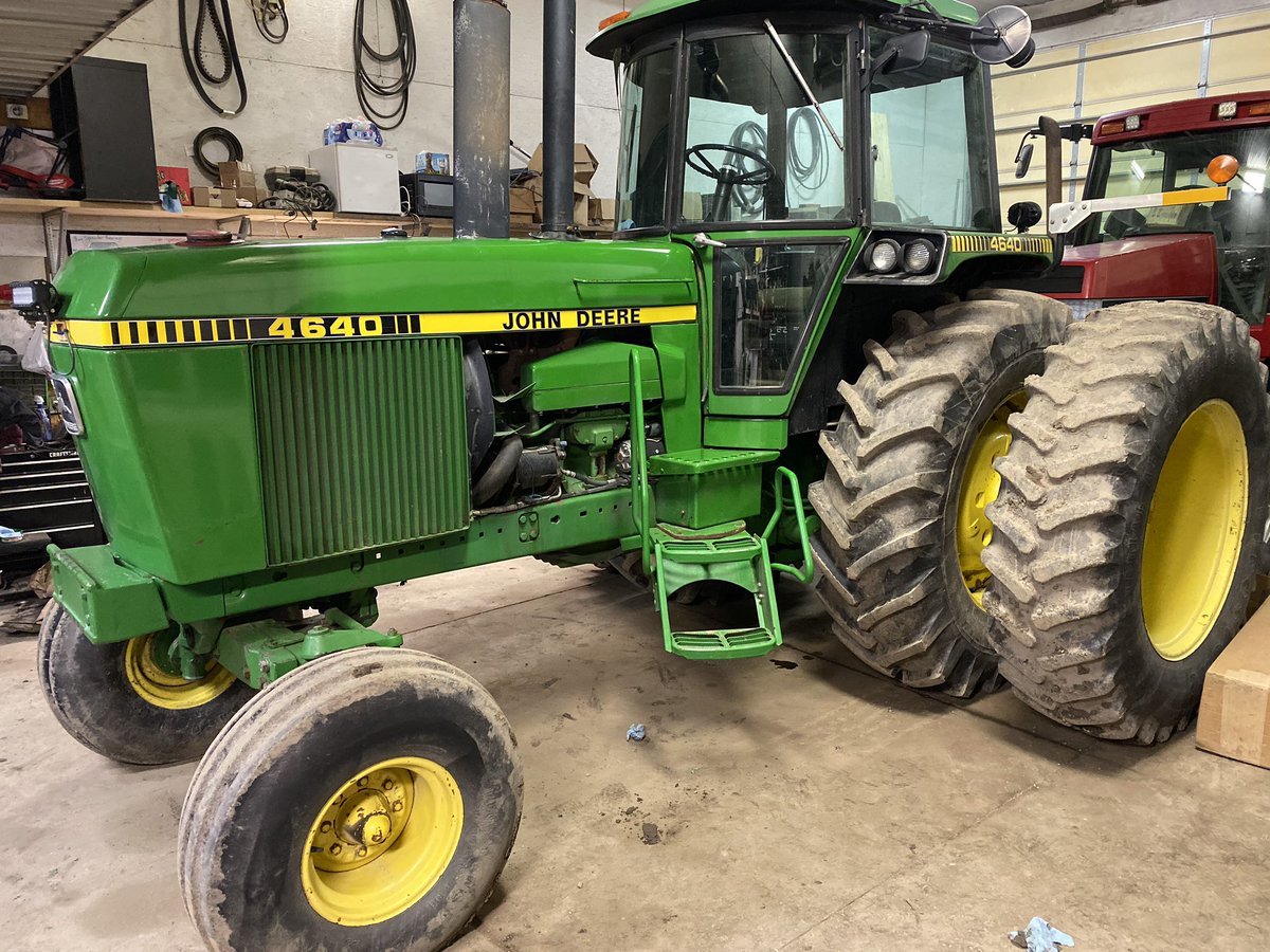 Please retweet For Sale 1979 John Deere 4640 - 6718 hours - Powershift - 3 Hydraulic Remotes - 1000 PTO - A/C blew cold back in September - Michelin Inner Duals 520/85R38 90% - Firestone Outer Duals 18.4R38 40% - LED Lights - Very clean tractor that runs greatpic.twitter.com/US4t3Blr50