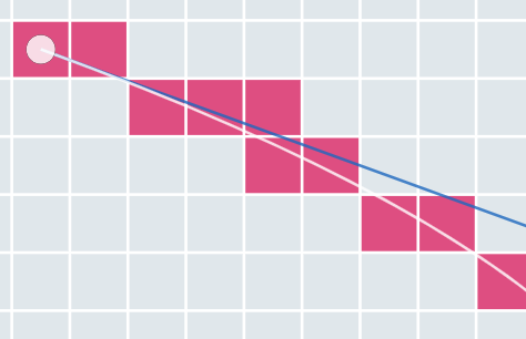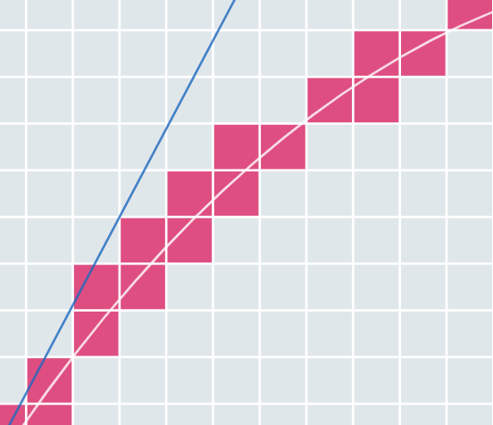 Cool page! Line drawing is surprisingly harder than filling. For example, here sometimes it moves N then E, and sometimes it moves diagonally.pic.twitter.com/y9slweHBog