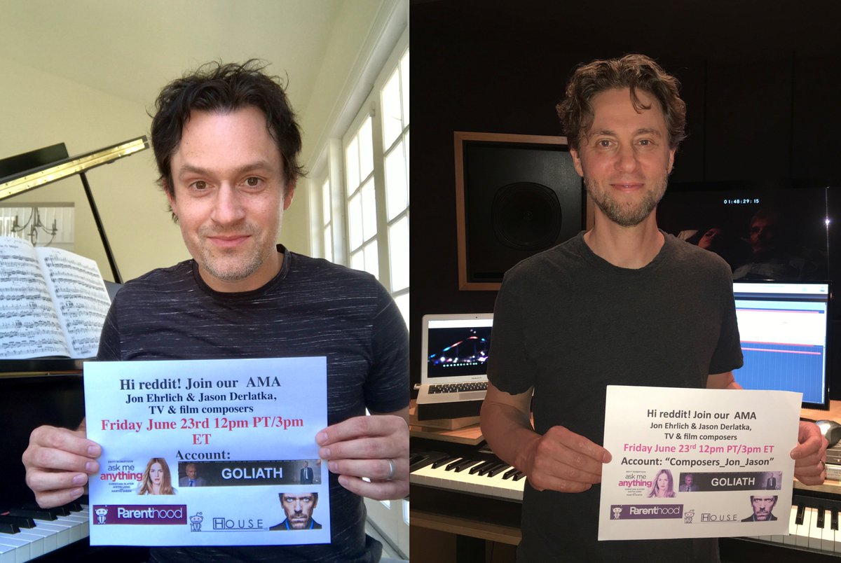 #Goliath composers#JonEhrlich &#JasonDerlatka for their@reddit_ama today, Fri June 22 @ 12pm PT/3pm ET#reddit#composer#musicpic.twitter.com/m0DMDPFexN