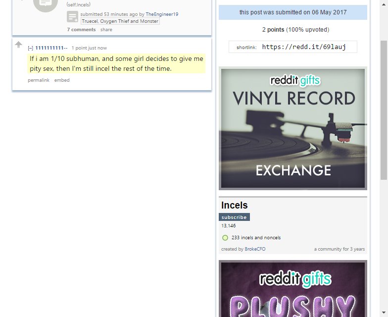 Incels: If i am 1/10 subhuman, and some girl decides to give me pity sex, then I'm still incel the http://np.reddit.com/r/Incels/comments/69lauj//dh7h1oi …pic.twitter.com/R5AClW6dJI