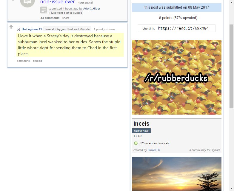 Incels: I love it when a Stacey's day is destroyed because a subhuman Incel wanked to her nudes. S http://np.reddit.com/r/Incels/comments/69xm84//dhaei0r …pic.twitter.com/fw5PDz36Ux
