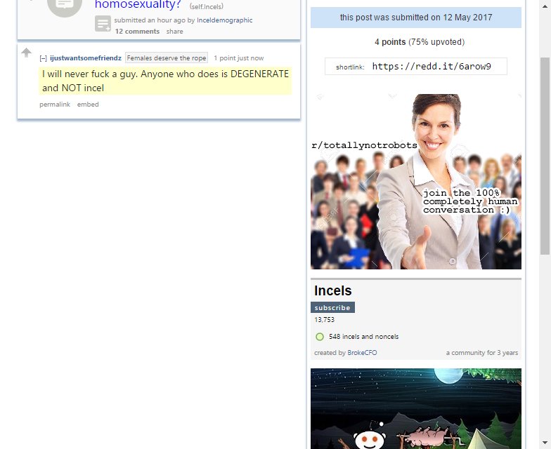 Incels: I will never fuck a guy. Anyone who does is DEGENERATE and NOT incel http://np.reddit.com/r/Incels/comments/6arow9//dhgzaf6 …pic.twitter.com/bobjj33yhi