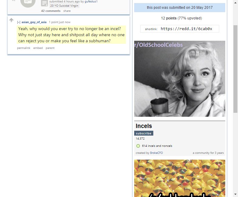 Incels: Yeah, why would you ever try to no longer be an incel? Why not just stay here and shitpost http://np.reddit.com/r/Incels/comments/6cab0x//dhtec5y …pic.twitter.com/eKjMk478ue