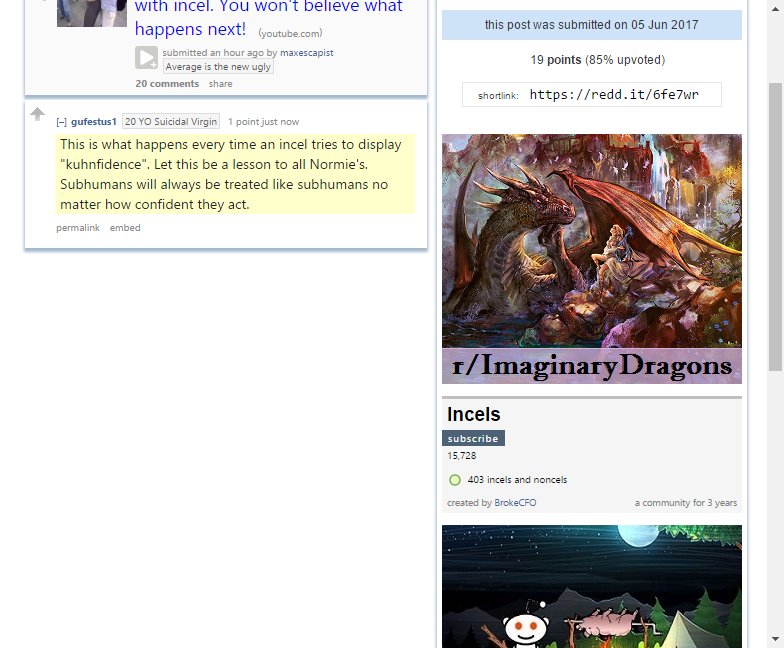 Incels: This is what happens every time an incel tries to display "kuhnfidence". Let this be a les http://np.reddit.com/r/Incels/comments/6fe7wr//dihlf2j …pic.twitter.com/L7S0Bqvnbt