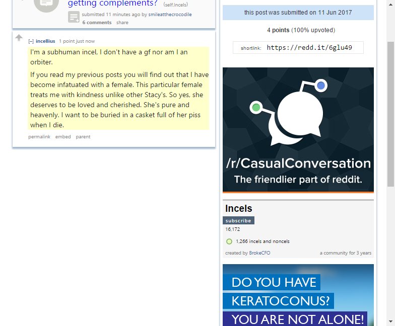 Incels: I'm a subhuman incel, I don't have a gf nor am I an orbiter. If you read my previous pos http://np.reddit.com/r/Incels/comments/6glu49//dir909a …pic.twitter.com/sGP9VoXd30