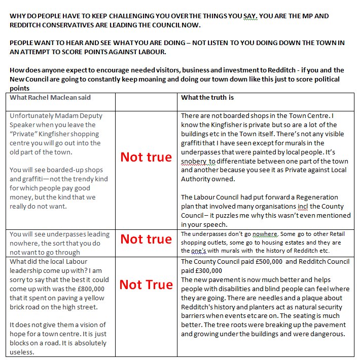 BTW - a table of what you said in parliament against the reality. If your confused about anything I suggest you go into the Town Centre and have a look for yourself @ReddLab @redditchrebecca @Redd_Advertiserpic.twitter.com/k3rygeDk6U