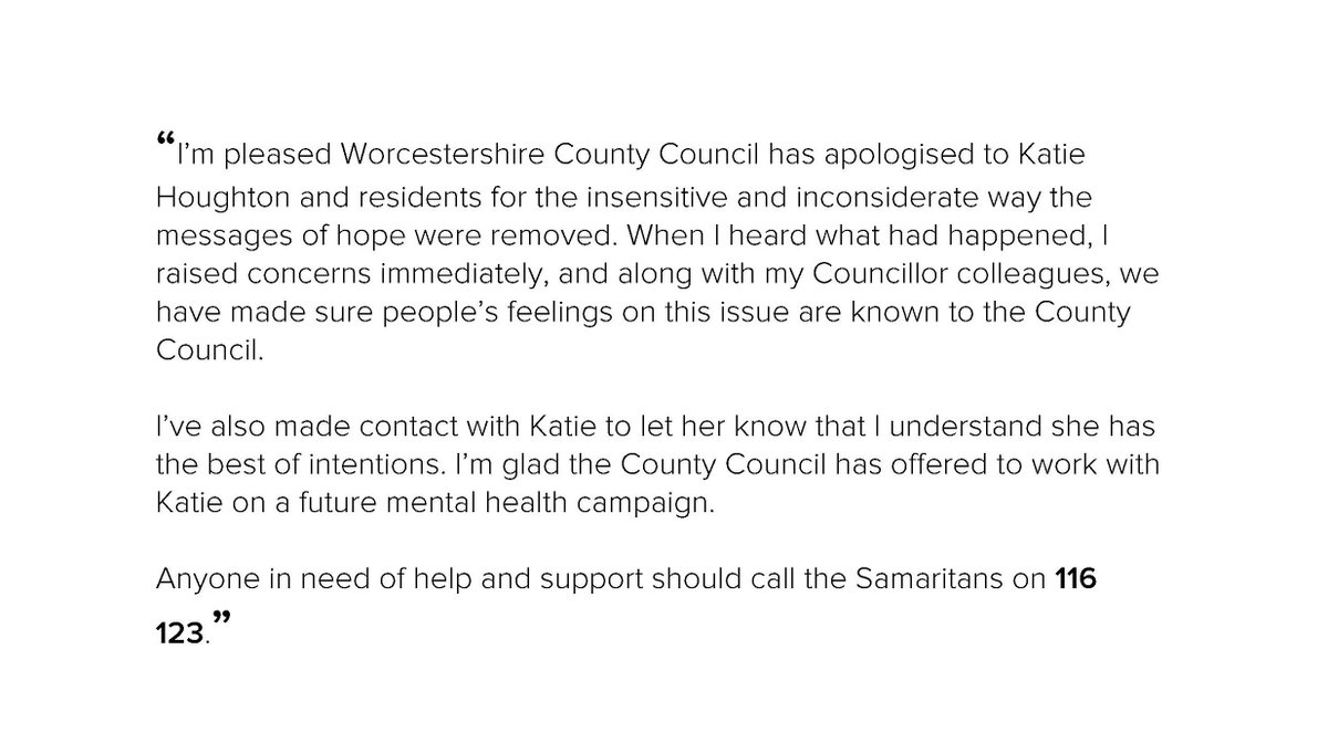 Please see my statement below 👇🏼 on the insensitive and inconsiderate way the County Council removed the messages of hope from Muskett's Way bridge.pic.twitter.com/KXEEfRuewq