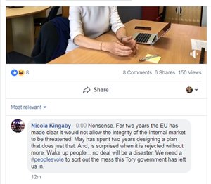 Seems to be a problem with your facebook. Any comments critical of our prime minister or supporting a peoples vote appear to go missing almost immediately. As I am sure you believe in free speech, assume it is a technical problem. Here is one of the comments 4 u to investigatepic.twitter.com/gjQMnUb5tg