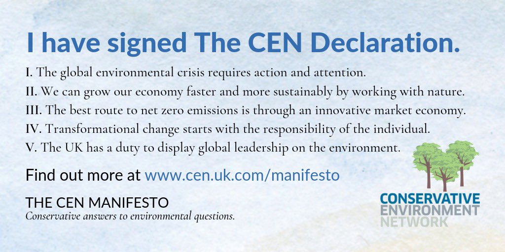 I’ve signed the @CEN_HQ declaration #CENmanifesto setting out how Conservatives are working to protect our environmentpic.twitter.com/ZdGeg5heK1