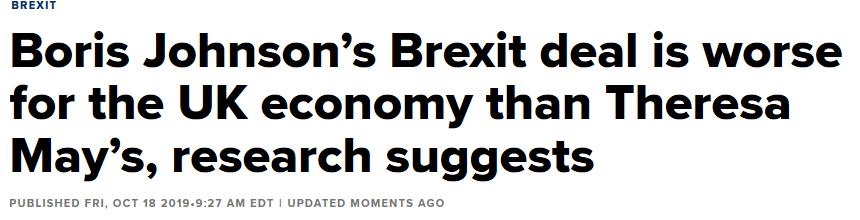 Can you just give up with the 1 liners that have no evidence to confirm what you say. It's getting very tiresome even for those who agree with you, although I'm not seeing many. The DUP and Lady Herman [Ind unionist] getting very angry at the arrogance. https://www.cnbc.com/2019/10/18/johnsons-brexit-deal-is-worse-for-the-uk-economy-than-mays-research-suggests.html …pic.twitter.com/XrncU1e9vj