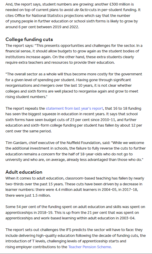 Could I leave this here.https://feweek.co.uk/2018/09/17/ifs-report-further-education-has-been-the-biggest-loser-in-cuts-to-government-funding/ …