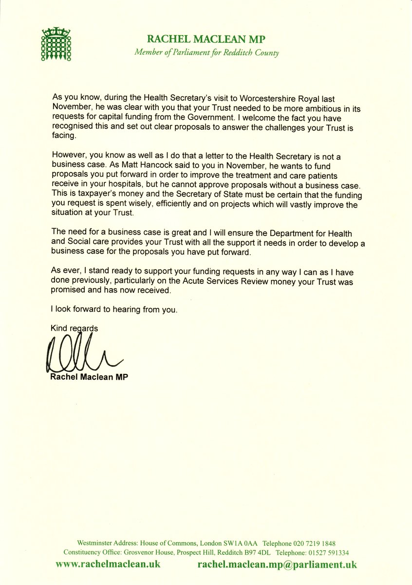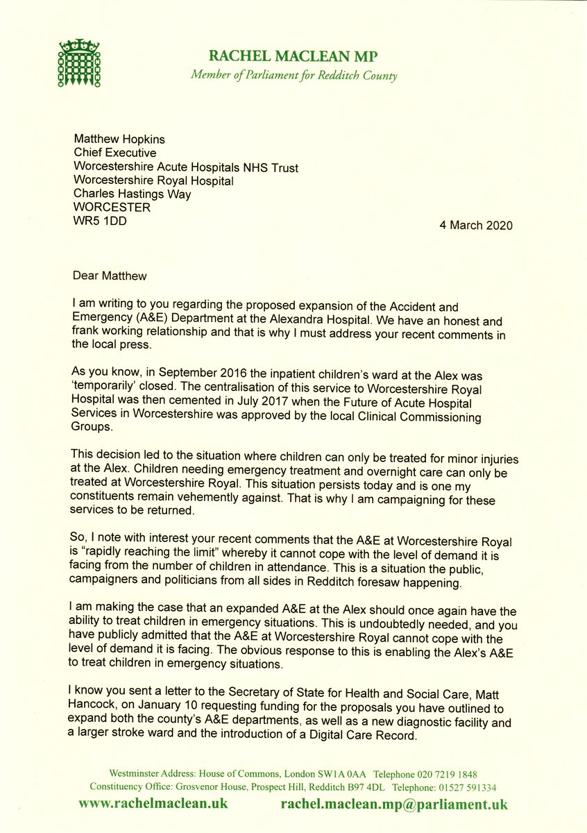 Centralisation a Government policy happening all over Country. You had an opportunity to ask for a review when it was approved by CCG in July 2017. You refused point blank. The Chief Exec makes it plain the Trusts proposals would be for Worcester Royal. No mention of the Alex.