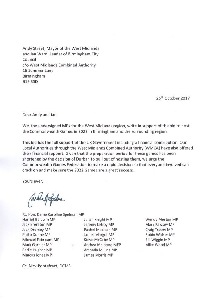 Having such support from across the political divide and right around the West Midlands is a powerful message for the @birminghamcg22. pic.twitter.com/EfI8Q34mQ4