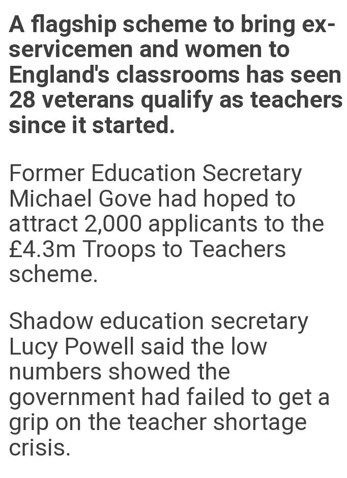 I’m really pleased to see this initiative which offers military veterans a bursary of £40,000 to train as maths, science, computing and engineering teachers. What a great idea.pic.twitter.com/XREStTu8Yx