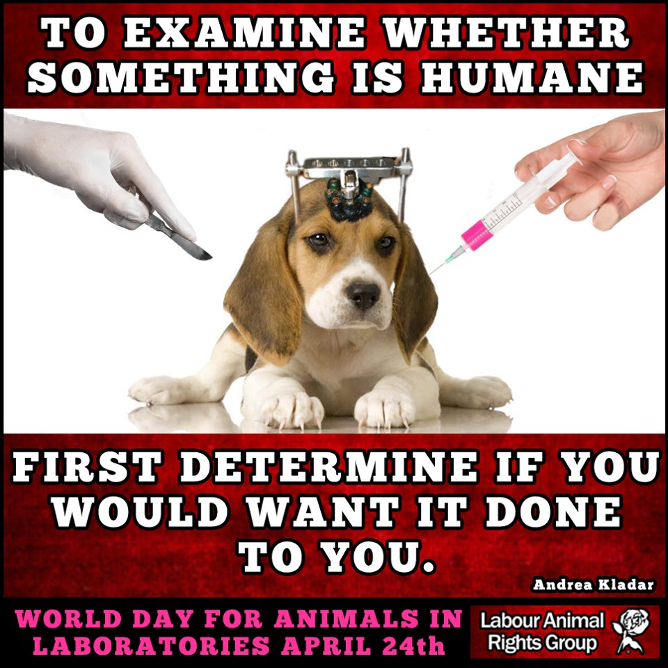 Today is #WorldDayForAnimalsInLaboratories Please spare a thought for the millions of animals that are cruelly tested , tortured and killed in laboratories. At least 115 million animals are used in experiments worldwide each year, including more than 4 million in the UK. #WDAIL pic.twitter.com/AgDbZVtdVX