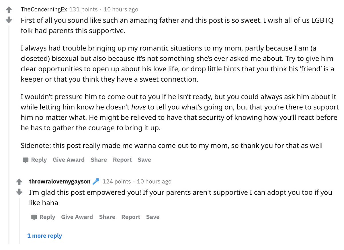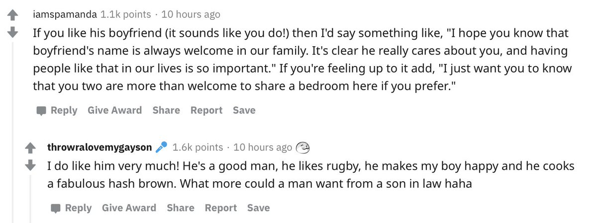 UPDATE: my son and his "friend" are a couple. How do I let them know it's okay? https://www.reddit.com/r/relationship_advice/comments/fwog3j …pic.twitter.com/eUsuYmMc7l