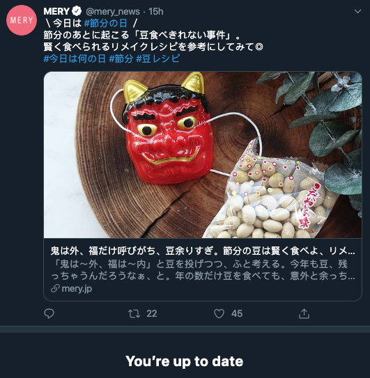 I have never regretted setting my trending location to Tokyo. What a perfect little experience Turns out this is about Setsubun, the Spring festival. You're supposed to throw soybeans to ward off evil spirits https://en.wikipedia.org/wiki/Setsubun pic.twitter.com/uYRBAKztKg