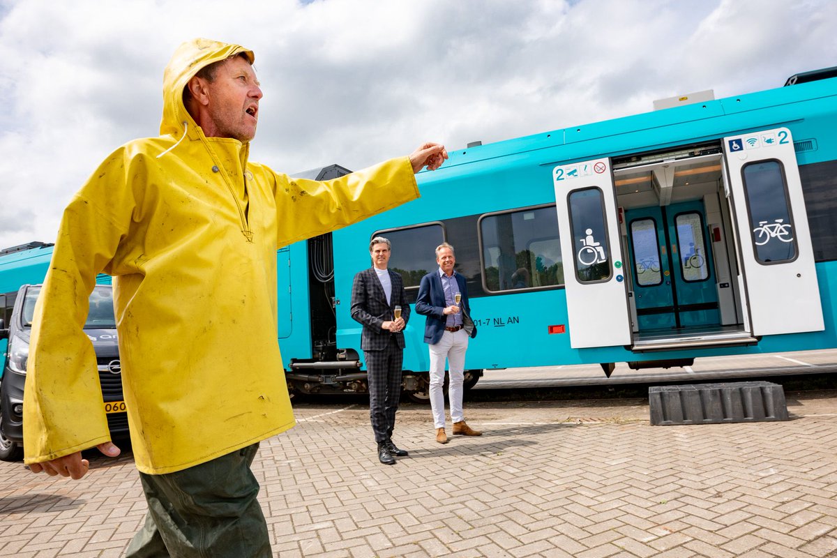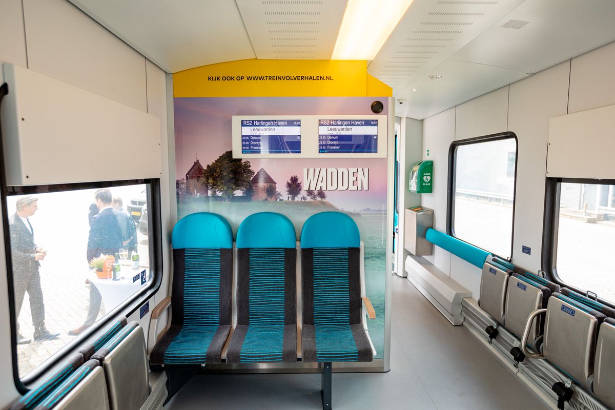 Je arriveert helemaal in de 'Wadden-mood' als je met deze mooie nieuwe trein naar Harlingen Haven reist. Gisteren werd de naam onthuld: "Het Wad".