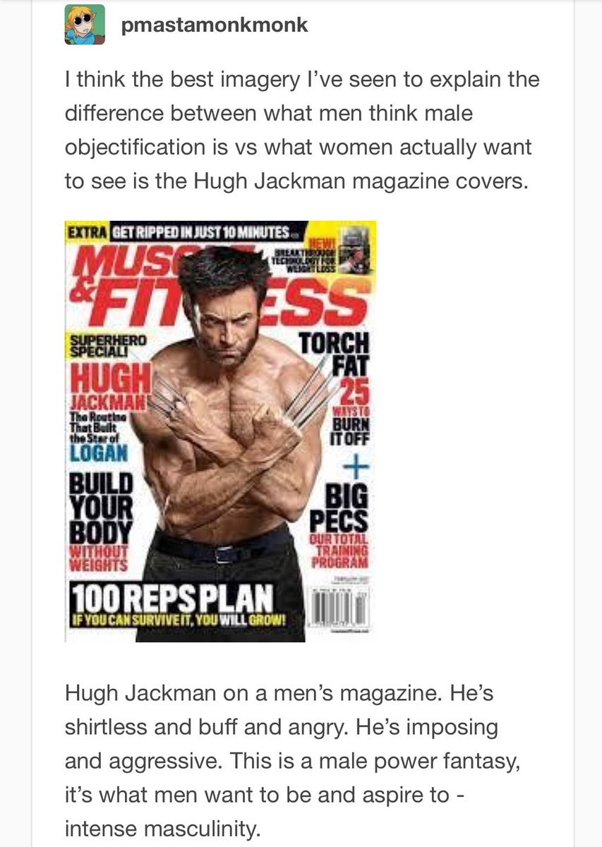 Men that think bulky, veiny, muscly superheroes are sexualized for women and not a male power fantasy made by men FOR men have actually IRL never talked to women. That or never actually listened to women.