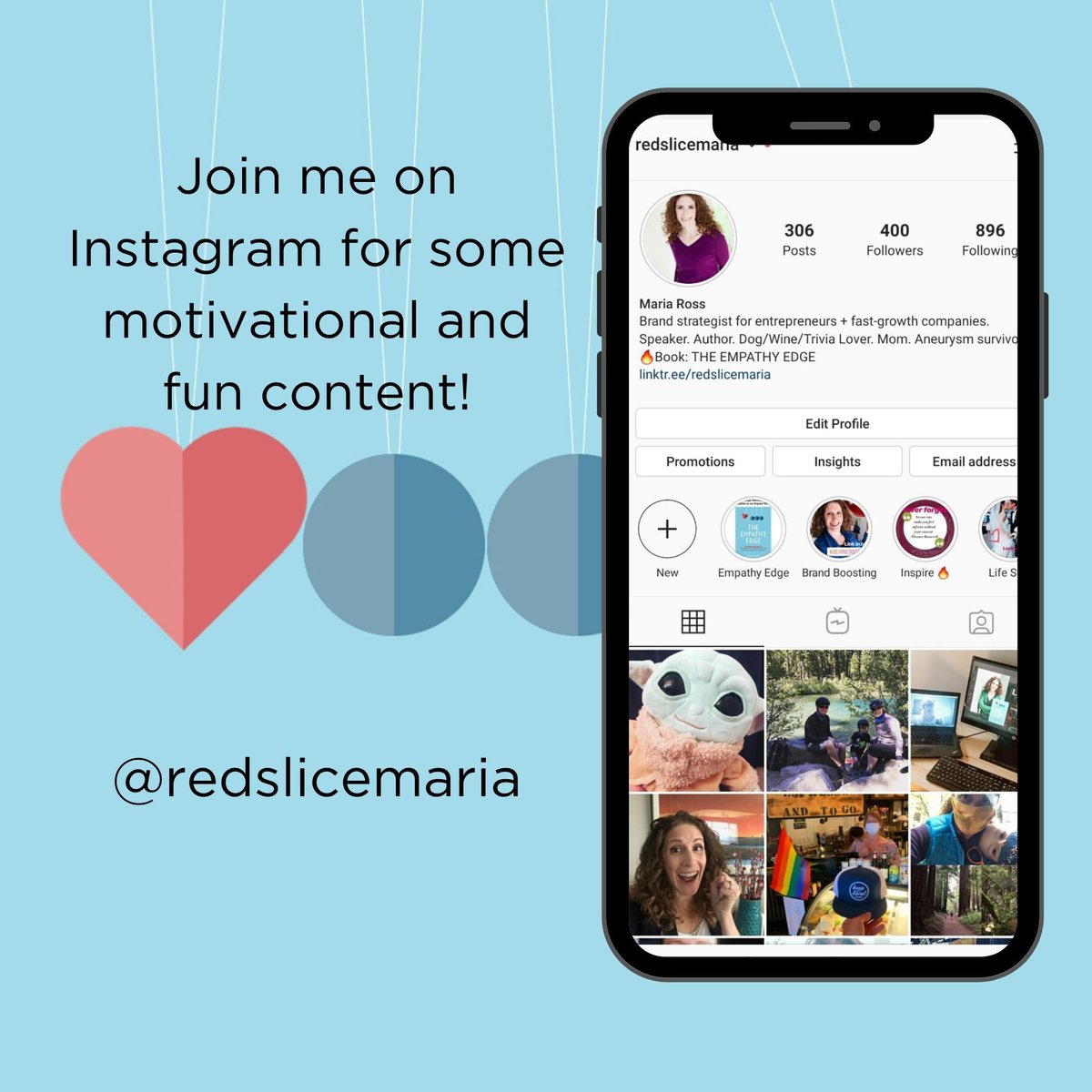 Join me on Instagram so we can connect and get motivated together. Follow RedSliceMaria - click the link -https://bit.ly/3fYncux . See you there!