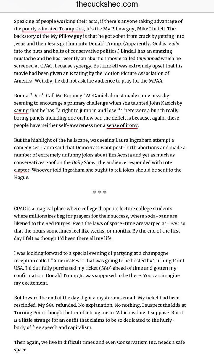 If your problem with conservative media is a website that sent a liberal to write funny stuff about CPAC, you're the problem with conservative media.