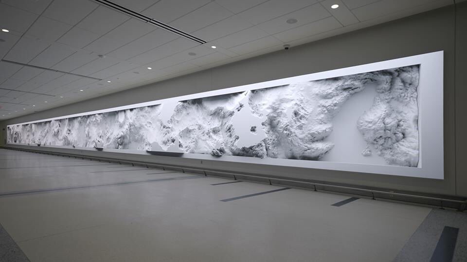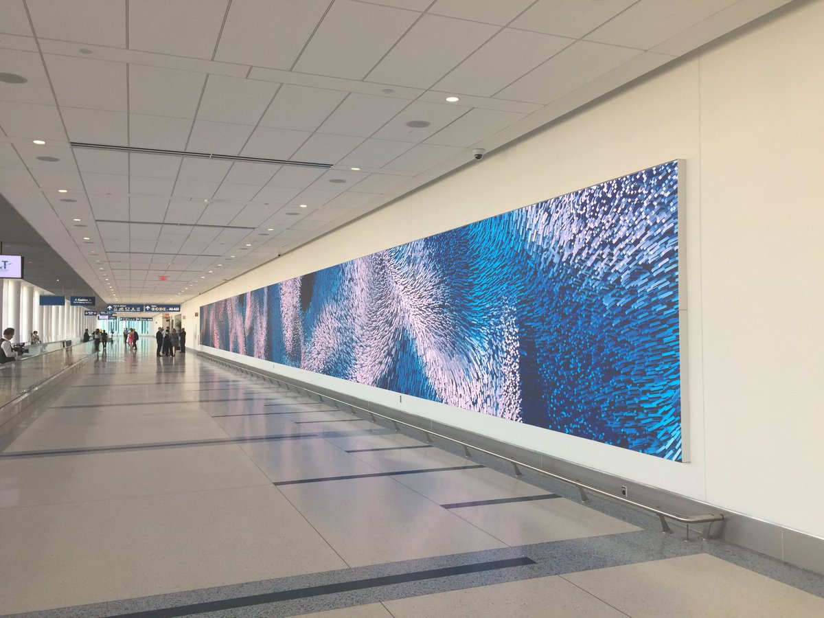Dear friends, currently working at Charlotte Douglas Airport's new Expansion Councourse & installing a new piece called Interconnected using data from entire airport operations (global flight networks, gates, luggage, parking). 40’ diagonal data paintings/140’x10’ data sculpture!pic.twitter.com/xAykDd18pi